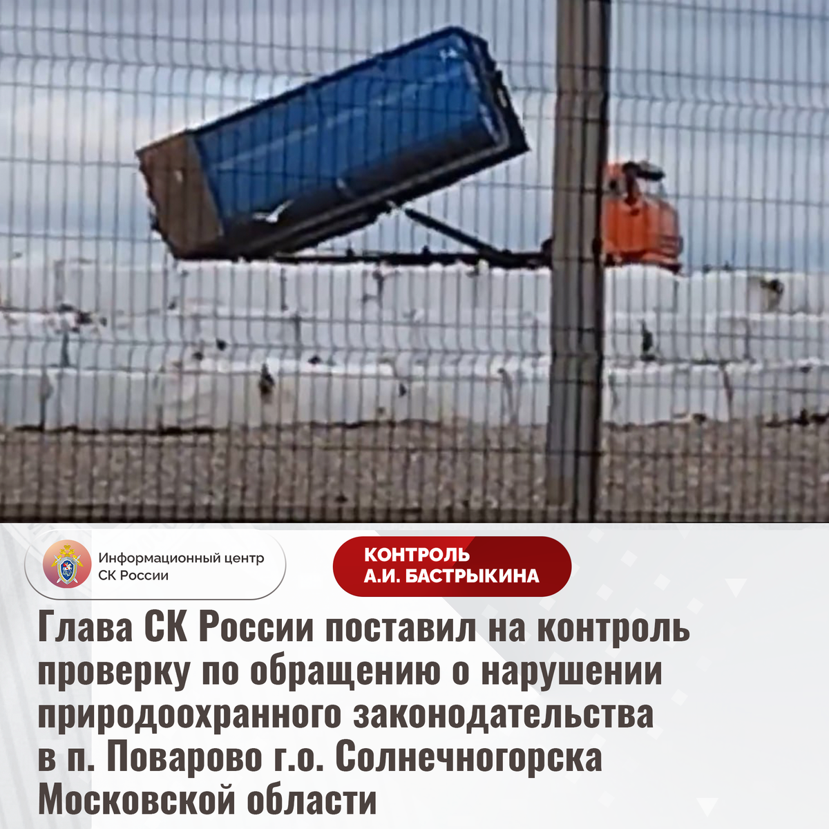 Глава СК России поставил на контроль проверку по обращению о нарушении природоохранного законодательства в п. Поварово г.о. Солнечногорска