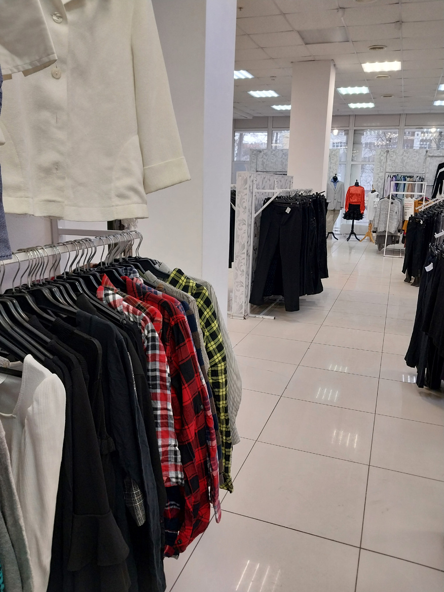 Обуви и аксессуаров здесь я не увидела, одежда висит по цветам, как и во многих подобных магазинах, а также по определенным категориям.