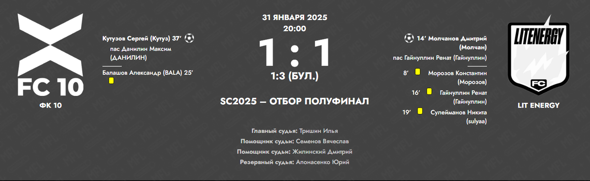 В футбольном центре Абу-Даби, где вовсю кипит предсезонная подготовка медийных команд, LitEnergy одержали уверенную победу над FC 10 со счетом 3:1 в товарищеском матче. Этот поединок стал важным этапом в подготовке к грядущему сезону Медиалиги для обеих команд, позволяя им проверить свои силы и отработать тактические наработки. FC 10, команда, отличающаяся своим опытом и сыгранностью, столкнулась с организованной и мотивированной игрой LitEnergy, которые демонстрируют уверенный прогресс в предсезонке. Доминирование LitEnergy и тактические перестроения FC 10: С первых минут стало заметно, что LitEnergy настроены на активный футбол. Высокий прессинг и быстрые переходы в атаку поставили FC 10 в затруднительное положение. LitEnergy удалось забить быстрый гол, что еще больше укрепило их уверенность. FC 10 попытались перестроиться тактически, но LitEnergy грамотно пресекали все попытки соперника наладить контроль над мячом. Благодаря организованной обороне и острым контратакам, LitEnergy уд