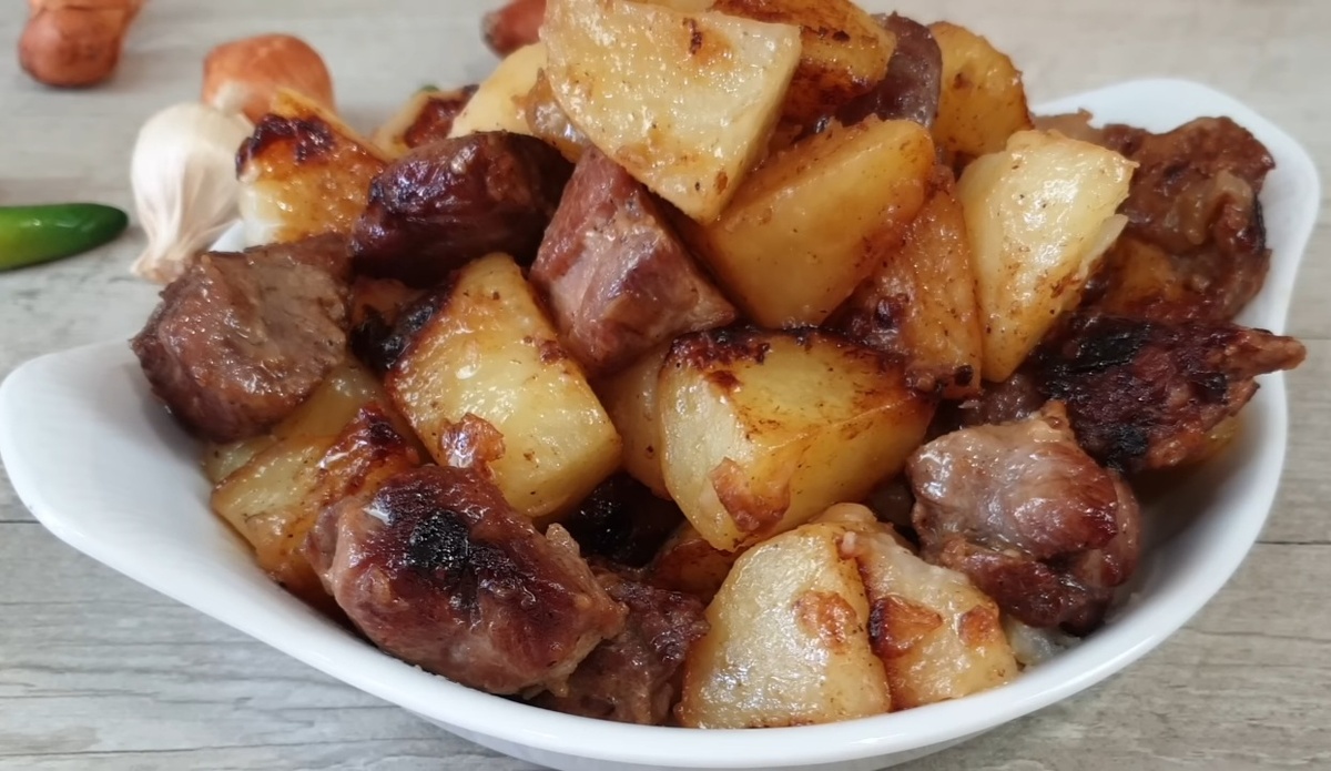 Та самая классика) Картофель – 6–8 шт. Мясо (свинина, говядина или курица) –500 г Лук – 1–2 шт. Морковь – 1 шт. (по желанию) Чеснок – 2 зубчика Растительное масло – 2–3 ст. л. Вода или бульон – 200–300 мл Лавровый лист – 1–2 шт. Соль, перец – по вкусу Зелень (укроп, петрушка) – для подачи ✅️В России и Украине подобные блюда называют «жаркое по-домашнему». ✅️Картофель появился в России в XVIII веке и сначала считался диковинкой. ✅️Вариантов этого блюда множество: его можно готовить в казане, мультиварке или духовке. ✅️Можно добавить грибы для более насыщенного вкуса.