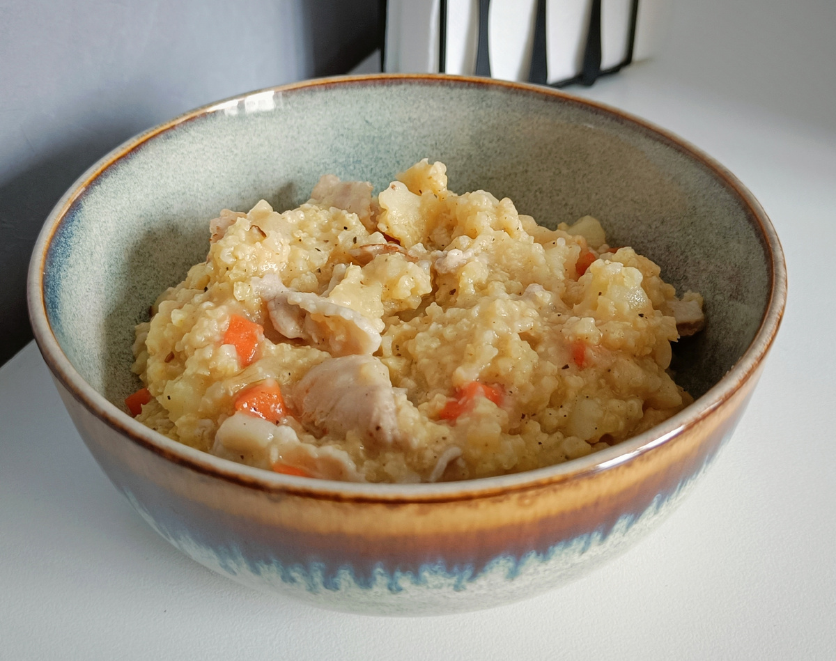 Как по мне, кулеш - максимально простое и домашнее блюдо. В оригинальных вариантах используется свинина. Но если вы её не едите, то считаю, что такую похлёбку можно приготовить и с курицей, и индейкой, и говядиной. А почему нет? 🙂