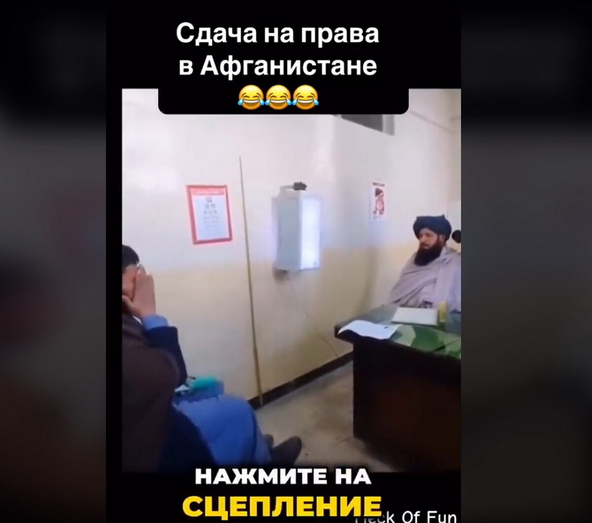 В социальной сети TikTok появился ролик, на котором автор видео показал процесс «сдачи практического экзамена на водительские права в Афганистане». За шесть дней видео набрало почти 14,6 млн просмотров, больше полумиллиона лайков и почти 12 тысяч комментариев. На видео показано, как курсанту автошколы предлагают присесть на стул и закрыть глаза, после чего экзаменатор-инструктор говорит что делать для успешной сдачи. «Нажмите на тормоз! Нажмите на газ! Нажмите на сцепление! Поставьте на ручник! Отлично, молодец!», — говорит он в микрофон на видео. Экзаменуемый, в свою очередь, выполняет инструкции, лишь имитируя действия водителя. После этого к сдаче приступает следующий человек. Всё это время самого автомобиля в кадре не наблюдается. Пользователи TikTok в комментариях к видео сразу же поинтересовались, «есть ли там люди, которые с первого раза не сдают?» такой экзамен и заинтересовались, как в Афганистане лицензию пилота получают. Другие же пользователи сразу изъявили желание поехать