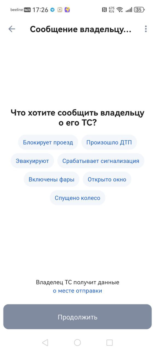 Правда, чатов в привычном формате мессенджера вы не увидите: можно отправлять только сообщения с уведомлениями о проблемах определённых типов. Например, сообщение о том, что машина мешает, о дорожно-транспортном происшествии, эвакуации машины, срабатывании сигнализации, включенных фарах, открытом окне или спущенном колесе.