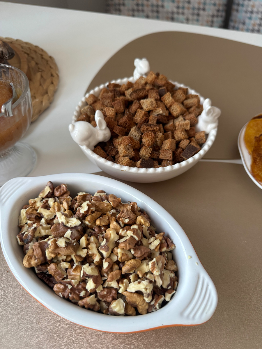 Кухня на сегодня всё- я отстрелялась. Собиралась сделать только салат. Но начала наводить порядок и нашла пакет сушек еще с позапрошлого года, старый хлеб, пакет нелущеных грецких орехов и овощной крем- суп аж три пачки. Малой его отказался есть, а срок подходил уже. Как итог сделала оладушков на этом крем- супе вместо кефира. Открыла банку маминого повидла. Наварила компота из сушек, нажарила в духовке сухариков из хлеба к супу. Если не пойдут- намолочу на панировочные сухари. И еще начистила орехи. Орехи, кстати, насобирала сама осенью в сьемном доме. Мораль такая. Надо наводить порядок чаще- так я знаю где что лежит. И если оно мне понадобится, я не побегу в магазин покупать, а буду знать где у меня дома в каком шкафу взять. Ну и в ход очень даже можно пустить то, что плохо лежит😁 #экономия_бюджета#экономия#бережливость