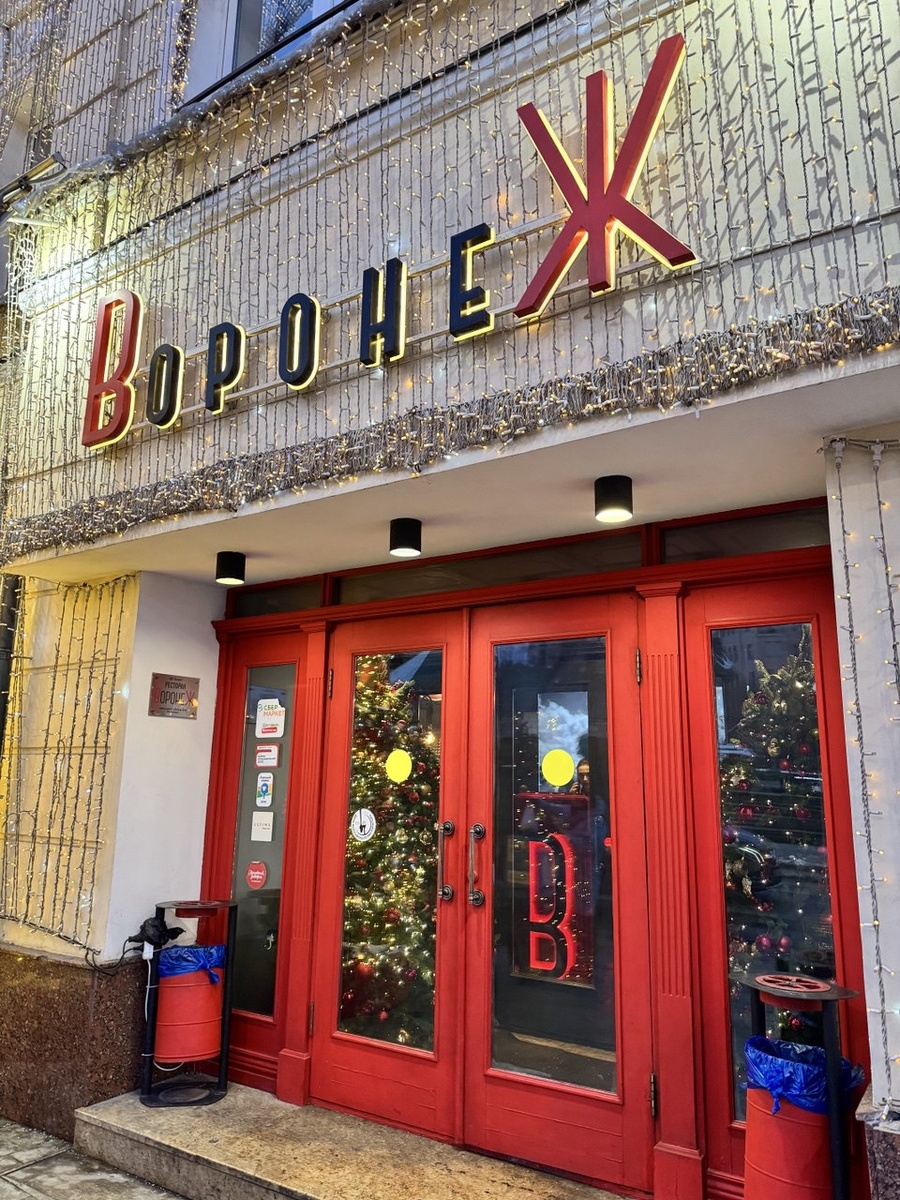Мы с коллегами отправились на корпоративный обед в ресторан «Воронеж» на Пречистенке. Из окон открывается потрясающий вид на храм Христа Спасителя. Летом здесь особенно приятно сидеть на террасе, но и зимой атмосфера заведения располагает к неспешному ужину.