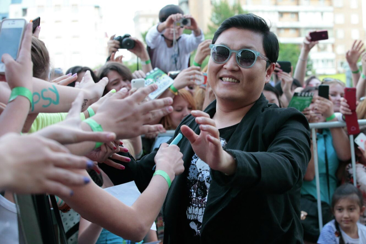 On the 7th of June 2013 a famous korean rapper PSY was coming to Moscow for his solo concert. Many people were fans of him and all of them something special for him. After a lot of discussion fans decided to create a great flashmob to celebrate PSY’s arriving to Moscow. The whole concert was planned to be made in Olympiyskiy stadium. Pac Che San, who is known as PSY, landed in moscow airport and took his way to the stadium. The thing rapper didn’t expected at all was a flashmob his fans made for his arrival. All the crowd with a number of more then 4000 started to dance as the rapper’s car drove into the stadium street. For more then 10 minutes people were doing this dance from PSY’s music video for Gangnam Style. The face of Che San was shining with a smile, but he could join the flashmob due to his tiredness after long flight from Los-Angeles. Although, PSY appreciated his fans’ efforts and thanked them for such a warm welcoming!
