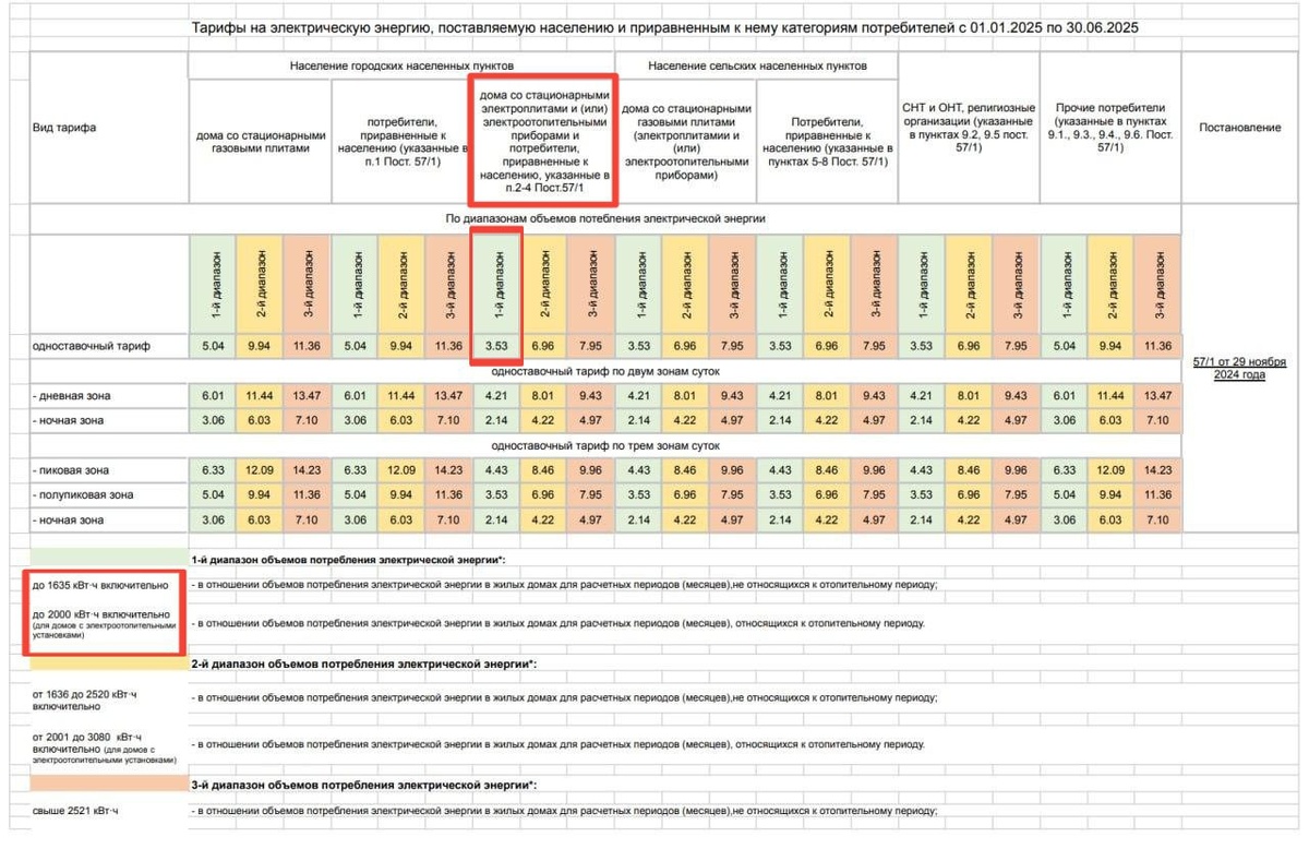 С 2025 года в России вступили в силу утвержденные правительством границы потребления в рамках диапазонов дифференцированных тарифов на электроэнергию. Так, максимальный уровень первого диапазона теперь составляет не более 3 900 кВт-ч в месяц (это самый дешевый тариф). Второй диапазон составит 6 000 кВт-Ч, все что выше – это будет уже третий диапазон.