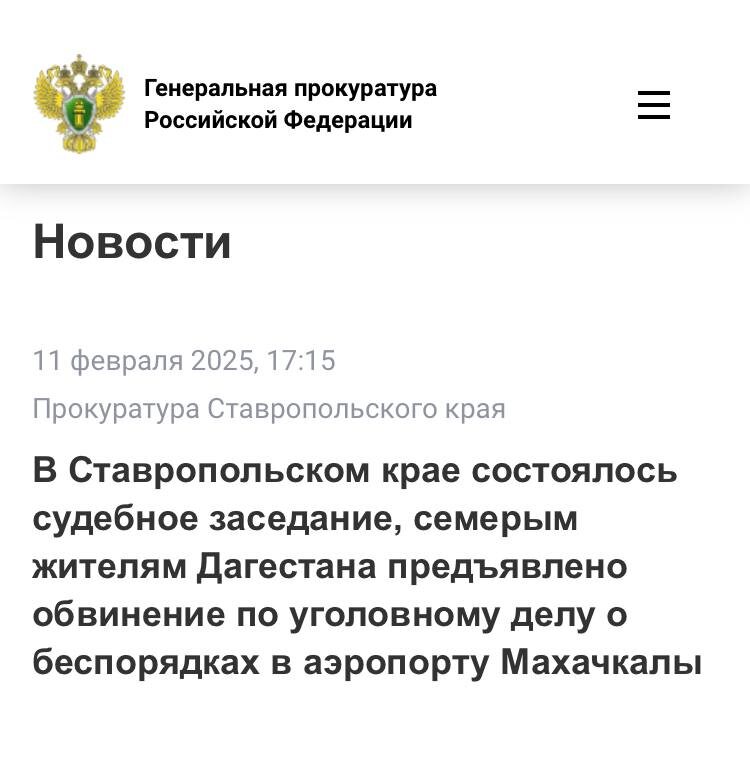 В Промышленном районном суде Ставрополя начался процесс над семью жителями Дагестана, обвиняемыми в организации и участии в массовых беспорядках в аэропорту Махачкалы в октябре 2023 года.