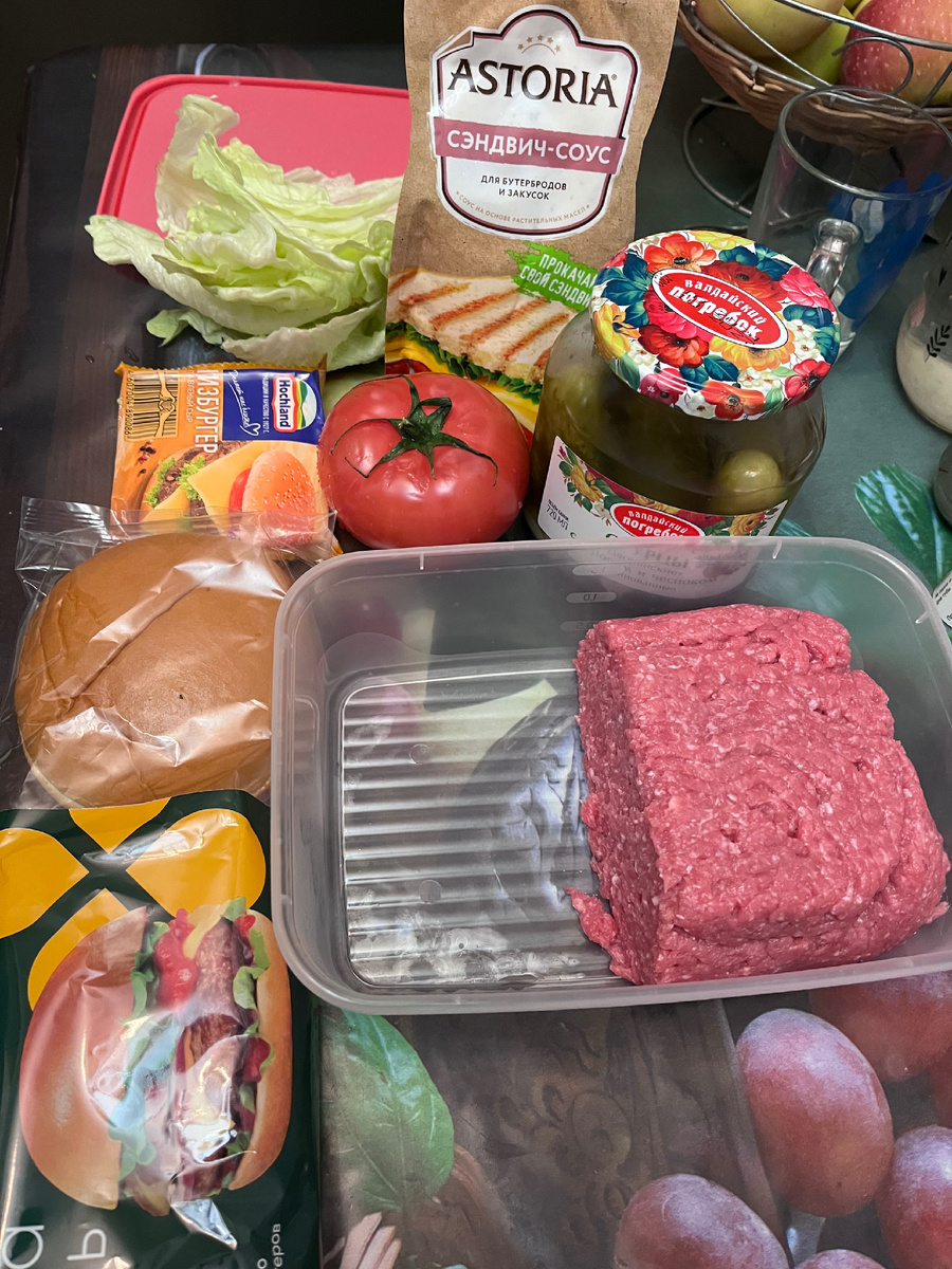 Нарезаем соленые огурчики 🥒 Нарезаем помидор кружочками помидор 🍅 делим Фарш на 6 равных колобков Формируем Отправляем на сковородку Пока жарится котлета, порвем салат 🥬 Нарежем лук 🧅 Отправляем поджариться булочки 🍔 Когда котлетка поджарилась, ее надо подсолить и поперчить Выкладываем на котлетку сыр Собираем бургер 🍔 булочки поджарились, смазываем соусом Котлетка с сыром Салат помидор вторая котлетка лук огурец сверху накрываем второй булочкой с соусом И вот такая красота, и вкуснота получается😍 очень сочно и очень вкусно Жду ваших подписок, комментарием и лайков, от них хочется все больше и вкуснее нее готовить☺️ приятного аппетита 😋
