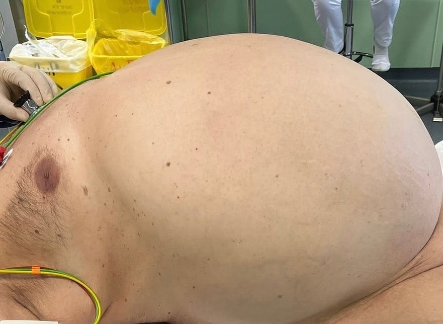 В отделении абдоминальной онкологии и рентгенхирургических методов лечения ГКОД бригадой хирургов под руководством заведующего отделением и к.м.н. Пелипася Ю. В. успешно прооперирован пациент с гигантской липосаркомой забрюшинного пространства. Ее вес достиг 26 кг. Пациент 59 лет поступил в диспансер с жалобами на боли в боку и спине, а также на увеличение размера живота. В кратчайшие сроки были сделаны все необходимые диагностические процедуры и установлен диагноз — липосаркома забрюшинного пространства. Этот вид опухоли относится к редким и медленно растущим, практически бессимптомным на ранних стадиях своего развития злокачественным новообразованиям. Во многих случаях пациенты, склонные к набору лишнего веса, думают, что медленно полнеют, длительное время не подозревая о болезни. На мультидисциплинарном консилиуме было принято решение о хирургическом вмешательстве: в данном случае именно такая тактика лечения могла дать наиболее благоприятный для пациента результат. Врачам-хирургам