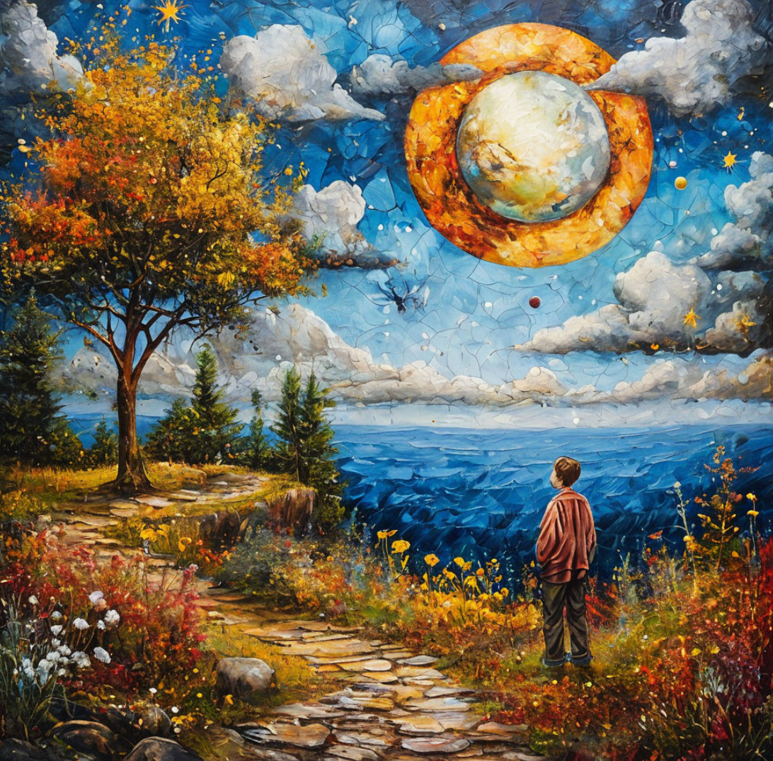 В одном маленьком городке, затерянном среди холмов и лесов, жил старик по имени Иван. Он был философом-самоучкой и любил задавать вопросы, на которые никто не мог ответить. Один из его любимых вопросов был: "Зачем мы живём?" Каждый день Иван выходил на центральную площадь, садился на скамейку и начинал задавать этот вопрос прохожим. — Зачем мы живём? — спрашивал он у молодой мамы, которая толкала перед собой коляску. — Чтобы растить детей, — отвечала она, улыбаясь. — Зачем мы живём? — спрашивал он у бизнесмена в дорогом костюме. — Чтобы добиваться успеха, — отвечал тот, проверяя часы. — Зачем мы живём? — спрашивал он у художника, рисующего на площади. — Чтобы творить, — отвечал художник, не отрываясь от холста. Но Иван оставался неудовлетворённым. Эти ответы казались ему слишком простыми, слишком… поверхностными. Однажды на площадь пришёл странный человек. Он был одет в простую одежду, а его глаза светились странным, почти мистическим светом. Иван, как обычно, задал ему