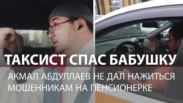 Водитель Акмал Абдуллаев стал свидетелем телефонного разговора пенсионерки с аферистами. Главным героем прошлой недели стал таксист и доставщик еды Баха, который в Подмосковье спас одиннадцатимесячную Лизу. Под роликом на нашем канале уже почти девять тысяч комментариев, большинство из которых — слова благодарности и восхищения поступком Бахи. На этой неделе другой таксист также успел отличиться: он спас бабушку от мошенников. Героя зовут Акмал Абдуллаев. Он уже давно приехал из Узбекистана в Петербург работать таксистом. На днях его пассажиркой стала бабушка, которой мошенники вызвали такси, чтобы она поехала в банк. По дороге она постоянно разговаривала по телефону. Акмал сразу понял, что что-то не так, и стал настаивать, чтобы пенсионерка положила трубку. Услышав это, мошенники потребовали, чтобы она срочно покинула такси. Но Акмал не мог отпустить женщину. Он заблокировал двери и позвал прохожих на помощь. В результате Акмал вернул бабушку к её подъезду и попросил соседей позвонить