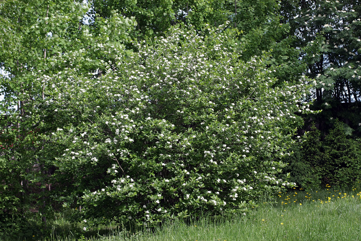 Цветение: в мае-июне. Цветки мелкие, белые или розоватые, собраны в щитковидные соцветия.
