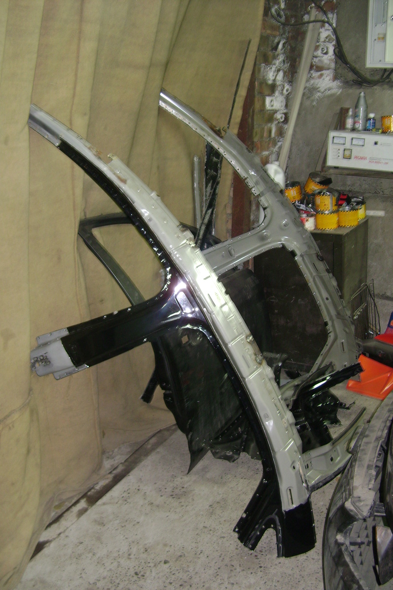 Затем с помощью помощника снял крышу с донора и воткнул в ремонтируемый автомобиль. Встала как родная без подгонки! Наживил несколькими сварочными точками и накинул двери со стеклами. Правда на фото машина без стекол, но я их накидывал. А потом снял двери, приварил крышу и остальные части и зачистил.
