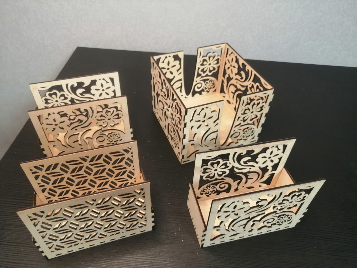 Лазерная резка — это технология, при которой лазерный луч используется для точного вырезания и гравировки материалов. Эта методика позволяет добиться высокой точности, скорости и чистоты реза, что делает её идеальной для работы с такими материалами, как фанера. Лазер не оставляет неровных краёв, и все детали получаются идеально вырезанными. Это особенно важно для салфетниц, которые должны быть не только функциональными, но и эстетически привлекательными. Фанера, как материал для лазерной резки, имеет несколько преимуществ: Экологичность: фанера — это натуральный материал, который легко перерабатывается и не содержит токсичных веществ. Долговечность: правильно обработанная фанера устойчива к воздействию влаги, что делает её идеальной для кухни. Универсальность: фанера может быть использована в разных стилях интерьера — от скандинавского минимализма до классического или даже винтажного стиля. Дизайн салфетниц из фанеры: креативность без границ Лазерная резка открывает шир