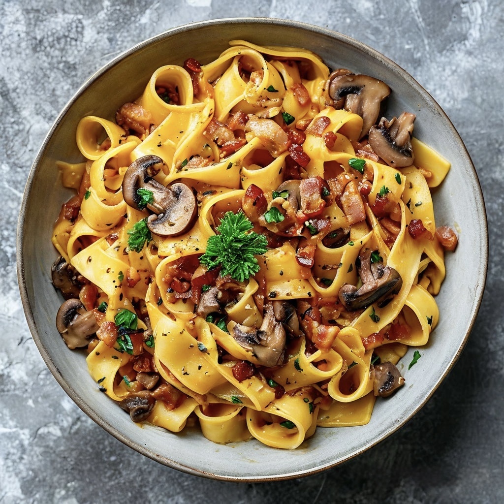Рецепт-провокация: паппарделле с грибами и беконом