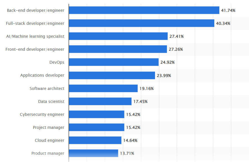 Fullstack-разработчик — это универсальный специалист, способный работать как с клиентской (frontend), так и с серверной (backend) частями веб-приложений. Такой профессионал может самостоятельно создавать полноценные проекты, охватывая весь спектр разработки. Разобраться в том, кто такой Fullstack-разработчик и как выглядит путь, который позволяет освоить профессию, нам помогли эксперты онлайн-школы программирования YCLA Coding. Содержание Fullstack-разработчик — это специалист, который разрабатывает как клиентскую, так и серверную части веб-приложений. Клиентская часть включает в себя все, что видит и с чем взаимодействует пользователь: интерфейсы, кнопки, формы и анимации. Серверная часть отвечает за логику приложения, работу с базами данных и обработку запросов. Fullstack-разработчик выполняет полный цикл разработки веб-приложений: Fullstack-разработчик в рейтинге самых востребованных IT-профессий. Источник: Statista Плюсы: Минусы: Стек Составляющие технологии MEAN MongoDB, Express.j