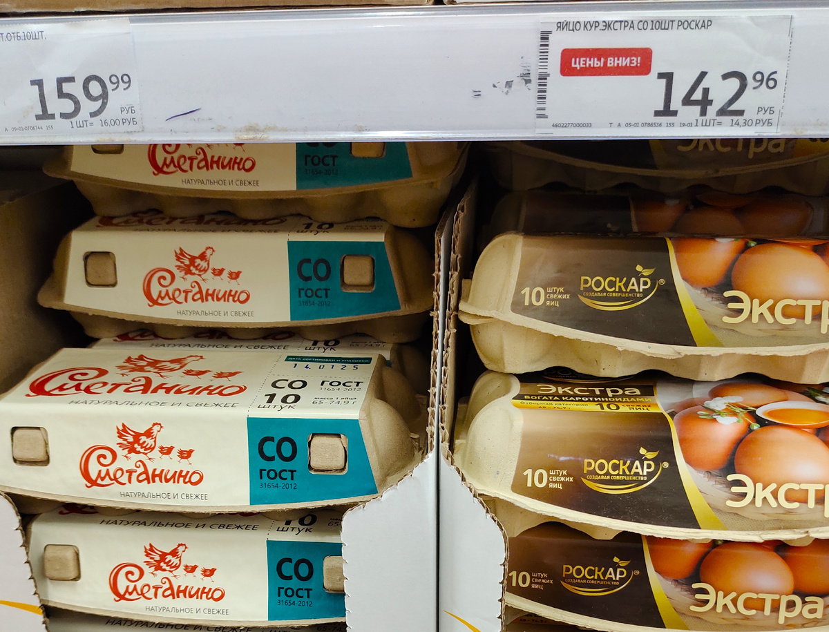 Единственно, яйца по самой низкой цене несколько меньше по размеру. Цены начинаются от 76 рублей за десяток