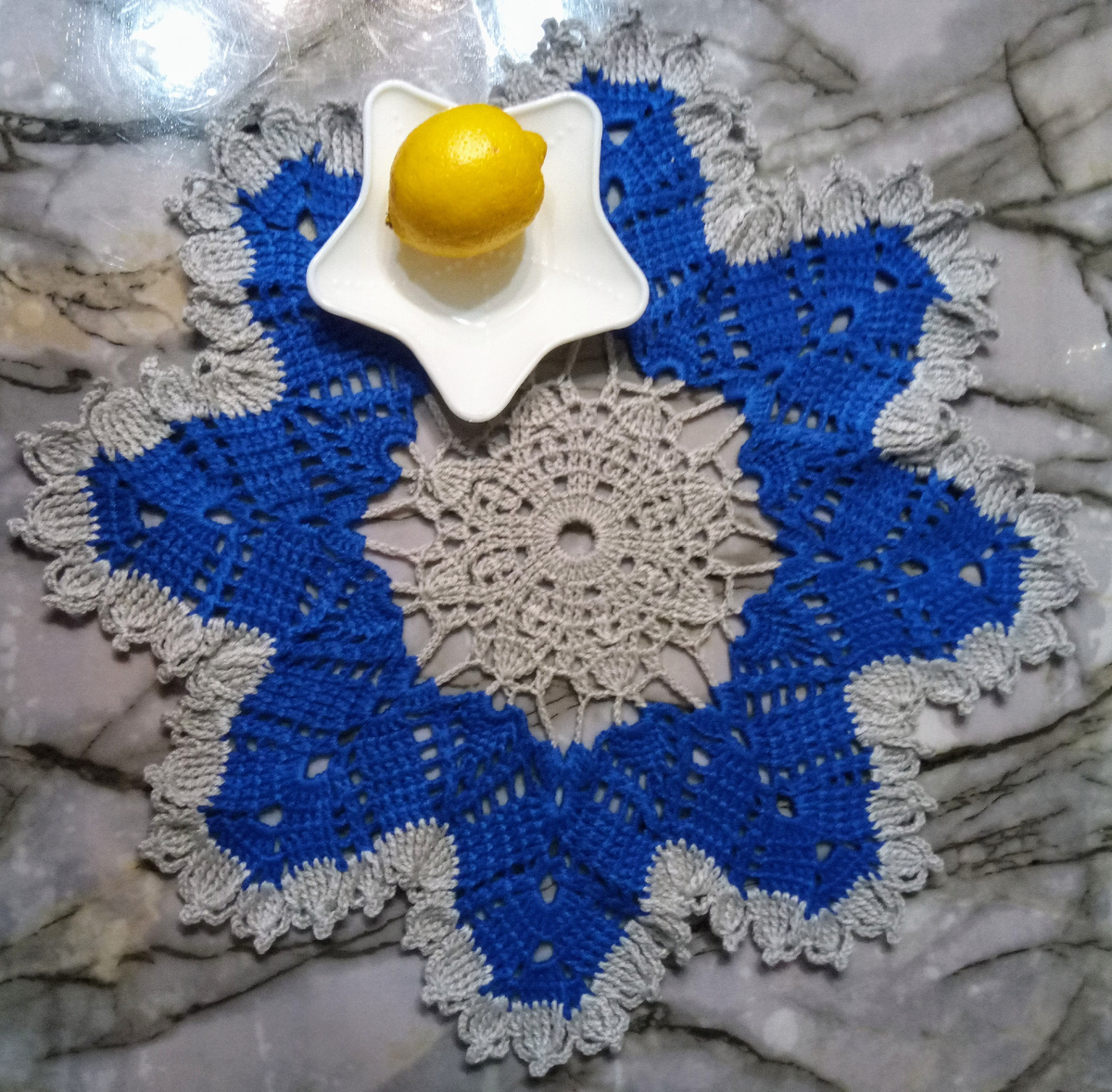1. Салфетка звёздочка 🌟. У меня она в двух цветах , светло-серый и синий. Диаметр 48 см. 2. Ажурная салфетка . Использовала два цвета , бежевый и кофейный . Диаметр 20 см. 3. Салфетка цветочная фантазия . Диаметр 50 см . Салфетка с объёмным краем , листья. Использовала два цвета , светло-серый и голубой. Диаметр 25 см. Приятного вязания !!!