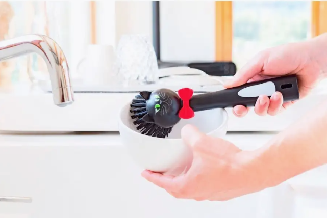 Щетка, между прочим, испанская, отсюда и цена. Качество хвалят, но бывают ошибки в комплектации, путают модели и цвета. А качество отличное, моет посуду прекрасно. И очень уж щеточка забавная.