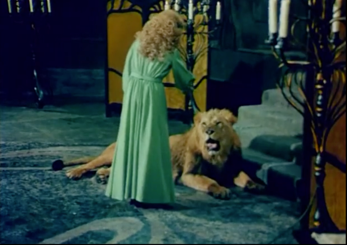 Дальше она начинает жить в своем новом доме, потому что логово выглядит все-таки как вполне приличный дом. Даже не дом, а небольшой замок. И довольно быстро узнает, что лев не совсем лев, и у него есть тайна...