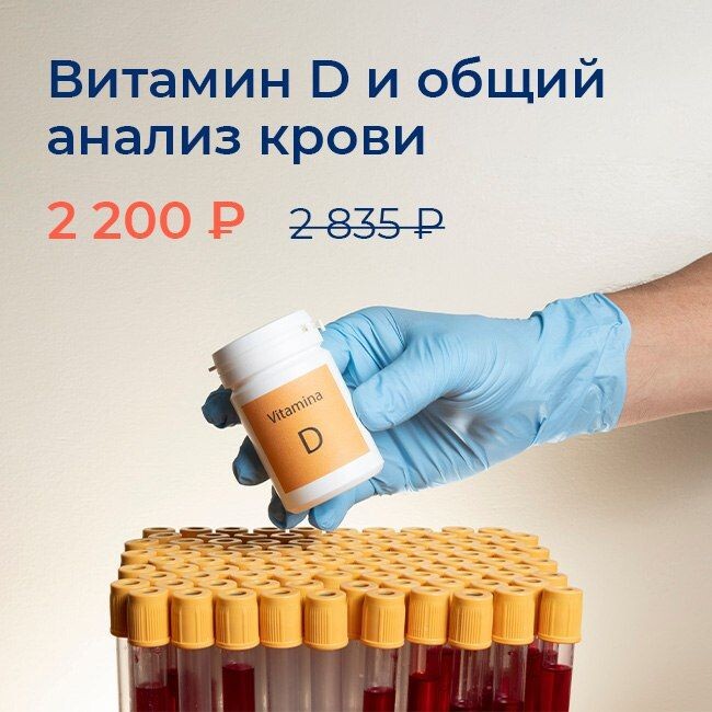 Около 80% россиян испытывают недостаточность витамина D. Симптомы дефицита витамина D: Сеть медицинских офисов CMD в Зеленограде приглашает сдать исследование для определения уровня витамина D и общий анализ крови по специальной цене до 28 февраля 2025 года. Медицинские анализы выполняются в лаборатории Центрального НИИ Эпидемиологии. Оформить заявку онлайн можно легко и быстро на сайте или в медицинских офисах CMD: Работаем ежедневно: Подробную информацию о правилах проведения акции уточняйте у администратора медицинского офиса по номеру: +7-499-714-66-56 или на сайте www.cmd-online.ru. Для получения скидки необходимо обратиться к администратору медицинского офиса. Реклама ООО «Зелмед» ИНН:7735184780 erid: 2VSb5w6Nsxk Лицензия № Л041-01137-77/00338382 от 30.12.2019 г. ИМЕЮТСЯ ПРОТИВОПОКАЗАНИЯ, НЕОБХОДИМА КОНСУЛЬТАЦИЯ СПЕЦИАЛИСТА