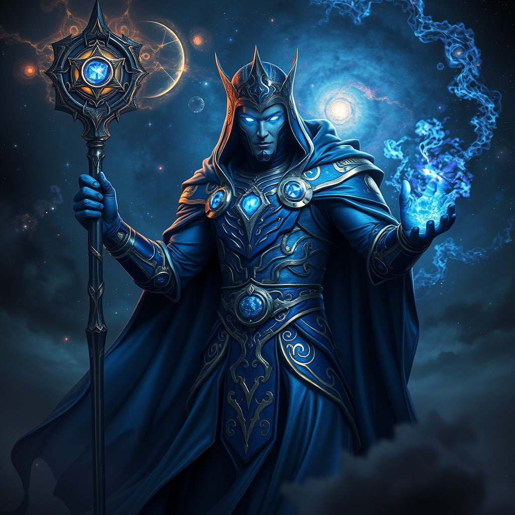 Космос стоял неподвижно, словно сама Вселенная замерла в ожидании его следующего шага. Каждая клеточка его существа излучала мощную энергию — индиго броня начала мягко пульсировать, переливаясь оттенками глубокого синего и золотистого света. Его силуэт был окружен легкой аурой, которая распространялась всё дальше, создавая вокруг него невидимую волну.