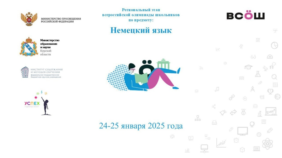 В региональном этапе Всероссийской олимпиады школьников по немецкому языку приняли участие 32 обучающихся. Олимпиада состояла из устного и письменного туров и проводилась с использованием единого комплекта заданий для 9-11 классов. В письменном туре участникам предстояло выполнить 4 тестовых задания и творческое задание «письмо». Устный тур представлял собой общение школьников в группах по заданной теме на немецком языке перед членами жюри. 🏆Победителем регионального этапа олимпиады по немецкому языку стала Анна Червякова (гимназия № 4 г. Курска), еще 10 школьников удостоено звания призеров. 📎Рейтинги участников регионального этапа ВсОШ публикуются на сайте Министерства образования и науки Курской области по ссылке: clck.ru/3GEoXS