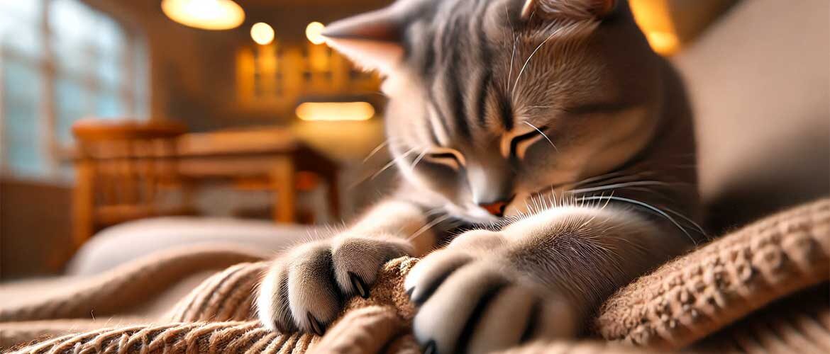 Кошки мнут лапами различные поверхности не просто так – это поведение заложено в них на уровне инстинктов и выполняет сразу несколько функций. Этот жест можно наблюдать у котят и взрослых кошек, и он связан как с физическими, так и с эмоциональными потребностями питомца. Разобравшись в причинах этого поведения, можно лучше понять своего пушистого друга. Это поведение проявляется у котят с самого раннего возраста. Когда они кормятся у матери, они разминают её живот лапками, стимулируя приток молока. Этот инстинкт сохраняется и во взрослом возрасте, превращаясь в ритуал, который кошки используют в разных ситуациях. Кошки чаще всего разминают лапами одеяла, подушки или колени хозяина, поскольку мягкие поверхности напоминают им детство и комфортное чувство безопасности. Это поведение приносит им удовольствие и помогает расслабиться. Кошки обладают железами на лапах, которые выделяют особые вещества – феромоны. Когда они разминают лапами поверхность, они помечают её, заявляя о своём присутс