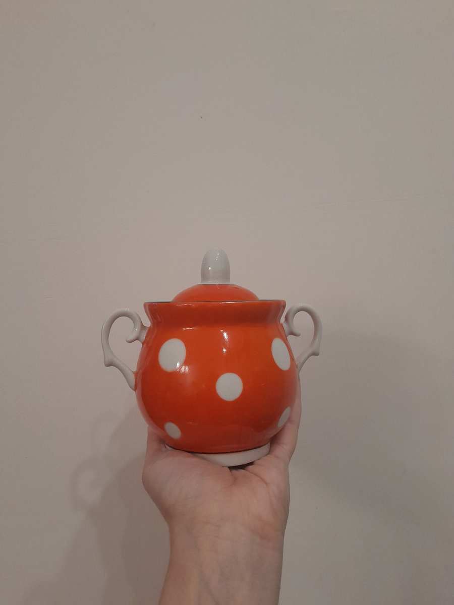 Чем мы с двойняшкиным папой любим барахолки, так это тем, что всё можно потрогать, посмотреть, да хоть понюхать/полизать (шучу😄). А если покупать на Авито (например, сервизы, неполные сервизы), это всегда большой упакованный объем, очень тяжело проверить, целое ли всё, и, вообще, то ли прислали, в полном ли объёме. Вот и вчера прислали сервиз (точнее, его маленький кусочек), а уж что приехало, покажу ниже. Сегодня по плану 2 сервиза. Отвлекусь: периодически спрашивают про упаковку, я когда-то писала статью, вот ссылка. Хотела новую статью написать, но пока не успеваю. Перейдём к сервизам и коту в мешке. Успокаивает только то, что заплатили за него мы всего 250 рублей. Ну и плюс доставка какая-то копеечная. Что мы получили за эти деньги. Вот такую милейшую сахарницу в горошек. Барановка. Такую же чайную пару. И... ещё одну чайную пару. Что-то не то, да? Горох крупнее. Блюдечко-то такое же, Барановка, а вот чашка - Полтавский фарфоровый завод. Нет, была ещё одна чашка в посылке, как