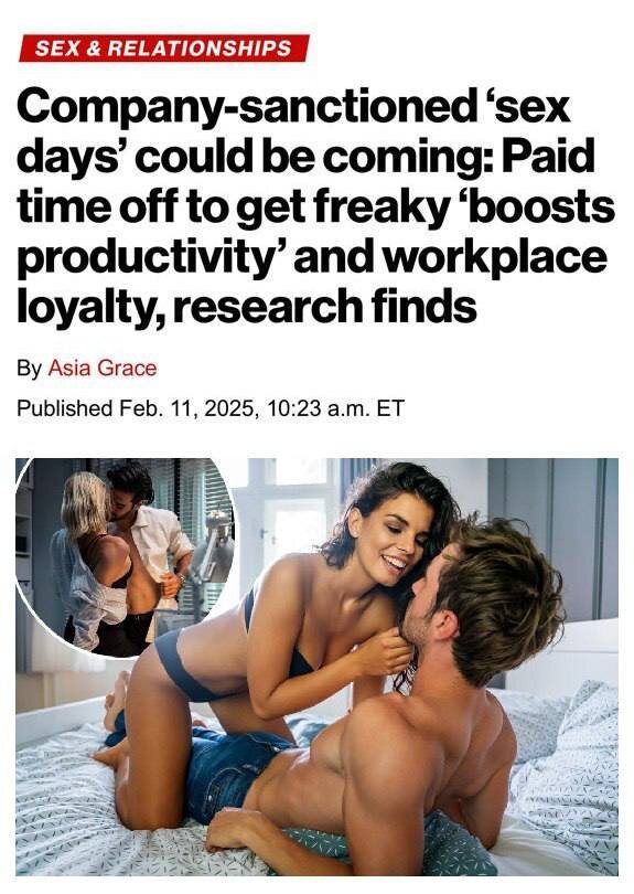 Аптечная сеть ZipHealth опросила 1000 работников разных возрастов и выяснила, что 50% уже устраивали себе такие «отгулы». После них люди чувствовали себя лучше и работали эффективнее. Эксперты уверены: секс-выходные помогут бороться с выгоранием и сделают сотрудников более мотивированными. Уже 3% компаний ввели такую практику, а 15% крупных работодателей готовы внедрить её в будущем. Теперь даже секс по расписанию.