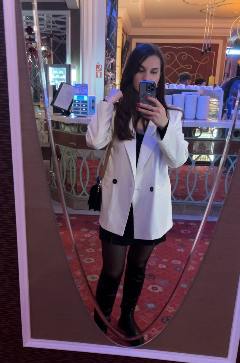 Над своим образом думала не очень долго, но и в чём попало я бы не пошла. Надела юбку, боди, пиджак и ботфорты без каблука. Отказаться от каблука было лучшим решением, дальше вы поймёте почему.