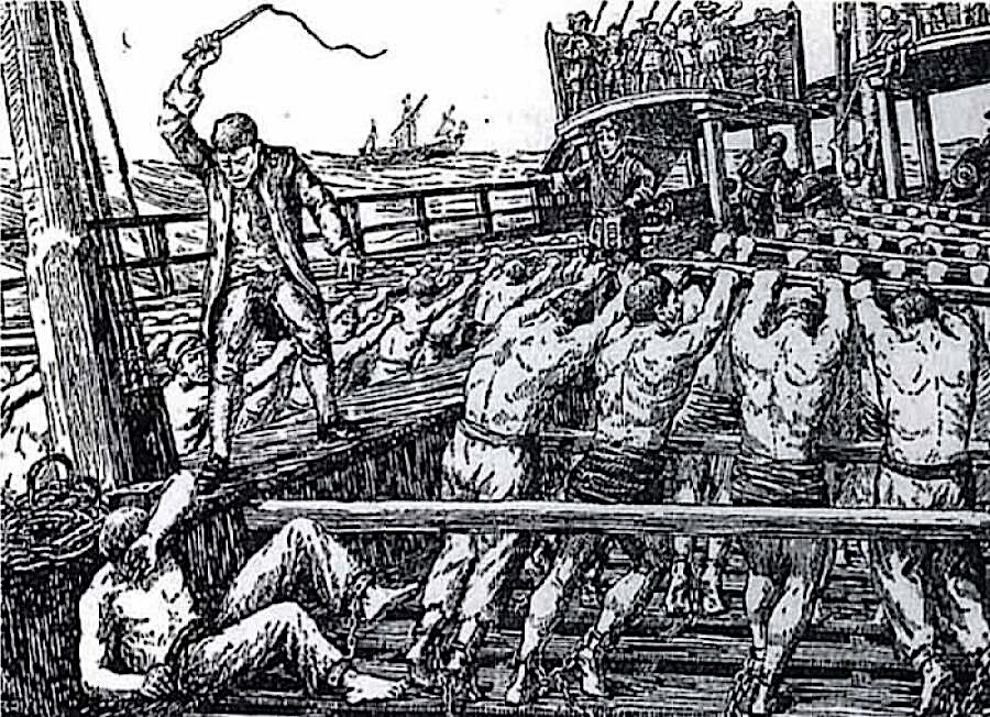 Сергей Викторович обвел взглядом трюм: десятки, если не сотни, аналогичных столов по которым двигали столь же монструозными веслами прикованные к ним люди. Меж рядами прогуливался амбал очень похожий на их грузчика Васю; про таких говорят «поперек себя шире». Только тот, воронежский Вася, постоянно носил засаленный рабочий комбинезон и, не смотря на свою силушку во-истину богатырскую, был очень добр и застенчив. На этом же были цветастые шорты, деловой пиджак на голое тело и толстенная золотая цепь на шее. Этакий эталонный браток из начала девяностых: грубый и закаленный в жестокости зверь, обходил ряды прикованных к веслам людей. Скользя по ним безразличным взглядом и поигрывал плеткой которую держал в левой руке. Правая же его рука была занята бутылкой опознанной Сереем Викторовичем - «Chateau Mouton Rothschild» и к которой здоровяк время от времени прикладывался, причем делал это так же безразлично, словно и не к дорогущему вину, а обычной воде.