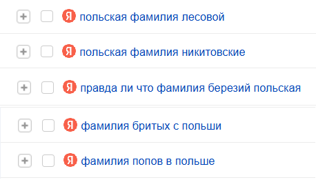 Из всех фамилий, представленных на скриншоте из Метрики, в Польше встречается только Попов. Это фамилия потомков русских эмигрантов. Фамилия Лесовой не польская, потому что, во-первых, в польском языке ударение не может падать на последний слог, а во-вторых, по-польски лес – ляс и фамилия, образованная от этого слова – Lasowy (Лясовы). Березий – это украинская фамилия, того же типа образования, что Шарий, Топчий. У поляков нет имени Никита и сёл с названием Никитово или Никитовка, потому не может быть и фамилии Никитовский. По поводу фамилий типа Бритых я написала выше.