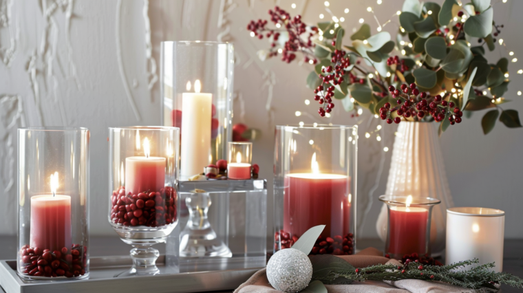 - Можно использовать стильные подсвечники, стеклянные вазы, керамические фигурки или свечи необычной формы.