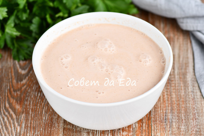 Вливаем воду (100 мл), солим, перчим, перемешиваем и нагреваем 2 минуты. Получается густоватый соус. Можно добавлять любые специи или сушеные травы по вкусу.