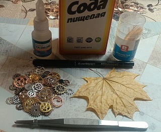 В качестве отделки возьмем один из главных символов стимпанка - шестеренки различного вида и размеров (можно взять вообще любой подходящий материал - болтики, гайки, трубочки, часовые механизмы, колеса, шайбы, пружинки и т.п.). Шестеренки я покупала на WB (арт. 303334113).
