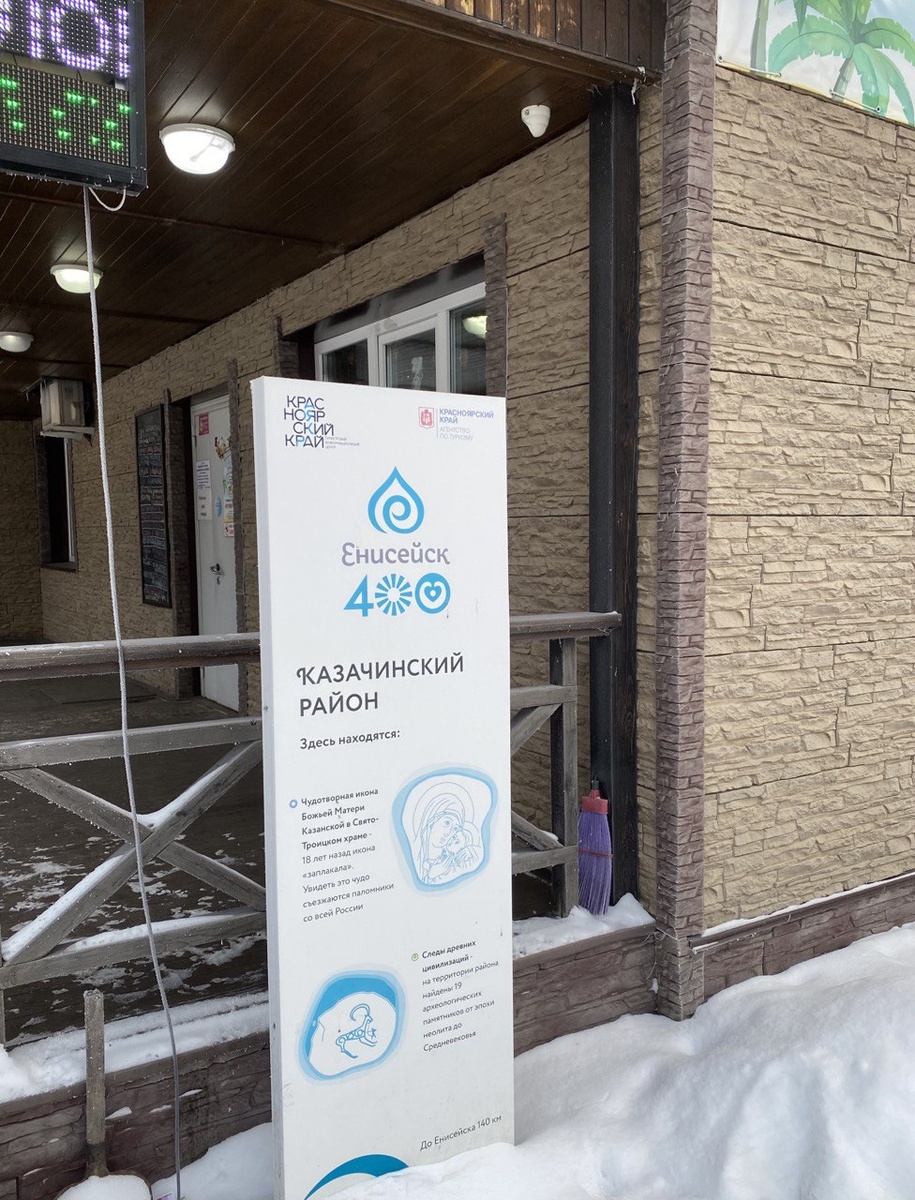 Баг`review Адрес: 191 км Енисейского тракта, с. Казачинское Подойдет для: вкусного обеда в дороге Наверняка каждый житель Красноярска хоть раз слышал про Енисейск. Раньше он был столицей Енисейской губернии. А сейчас там развивается туризм. Ехать до этого города 330 км, поэтому перекусить в дороге точно захочется. К счастью, в визит-центрах Красноярска, например, в серебряном логу есть туристические буклеты с заведениями. Расскажу об одном таком. Кафе сразу встречает стендом в стилистике Енисейской Сибири. Значит мы на месте. Очень радует, что заведение работает круглосуточно. Кстати, пляжная тематика будет прослеживаться и дальше. Островок внутри сделан из сруба, очень необычно, особенно, для кафе. Дрова и мебель из массива вместе с ёлочкой и гирляндами создают уют в заснеженном месте посреди трассы. На самом деле тут цивилизация: и телевизор, и оплата по карте, так что не пропадёте. Чафан – сибирский салат (иногда путают с гнездом глухаря). В него входят: говядина, морковь по-корейск