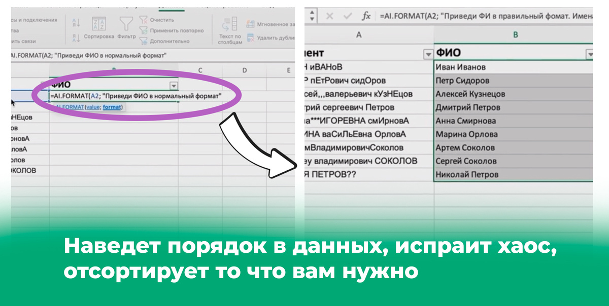 Такой подход особенно полезен для пользователей, не обладающих глубокими знаниями программирования. - Анализ и обработка данных ChatGPT for Excel может помочь в анализе данных, предложить оптимальные способы их структурирования и даже интегрировать результаты с инструментами вроде Power Query или Power Pivot.