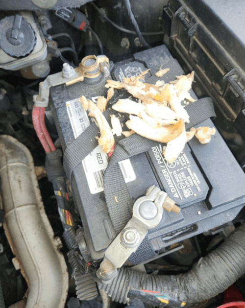 простое и логичное объяснение. В машине нашего героя завелись крысы или