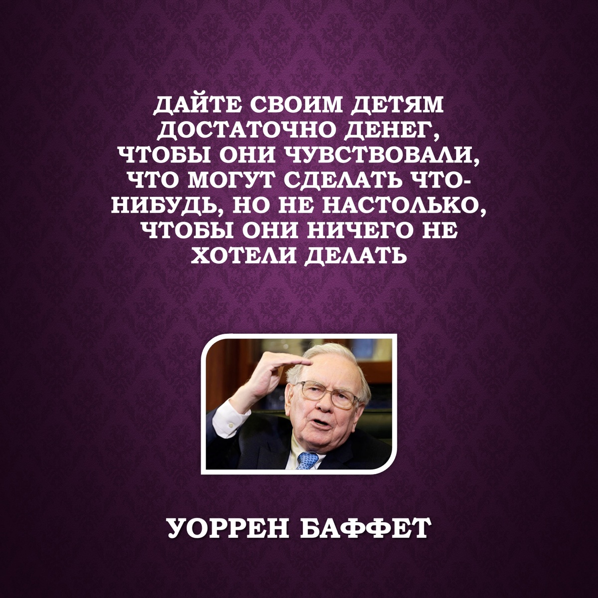 «Дайте своим детям достаточно денег, чтобы они чувствовали, что могут сделать что-нибудь, но не настолько, чтобы они ничего не хотели делать»Уоррен Баффет - миллиардер, один из самых успешных и известных инвесторов в мире.