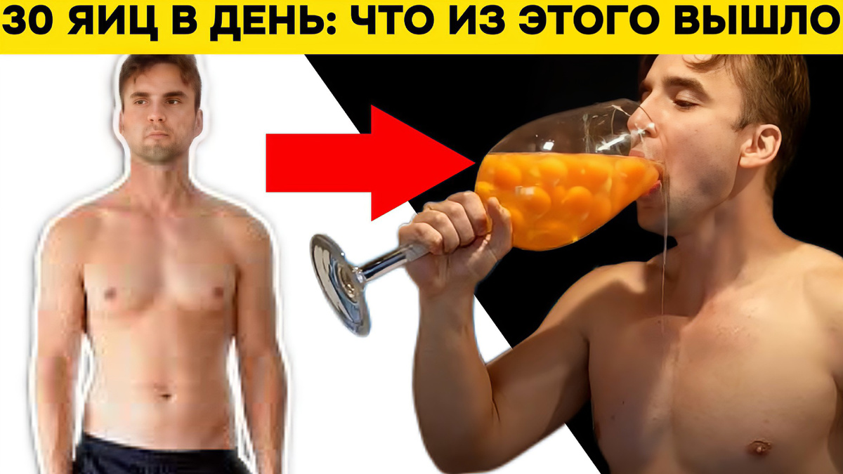 - 30 яиц в день — омлеты, смузи, сырые желтки, яйца с рисом.