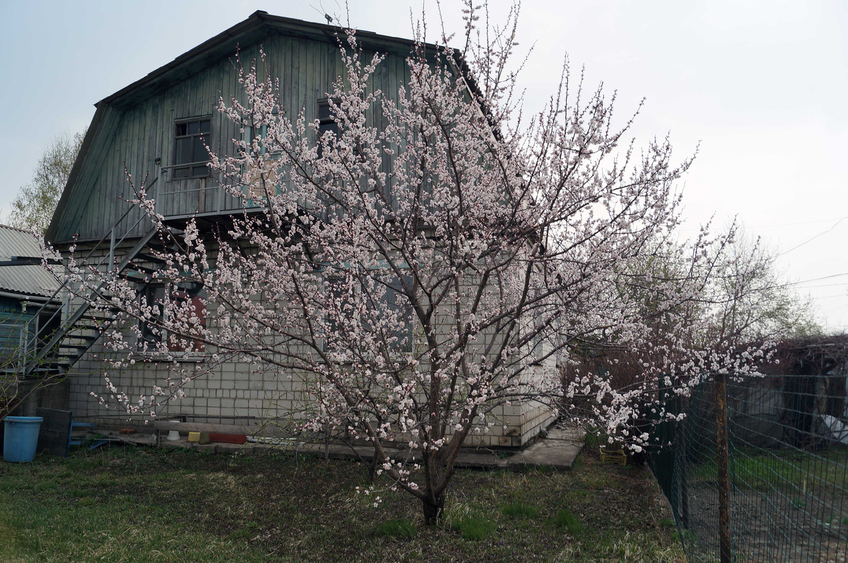 За пятнадцать лет, что мы тут живём, она так и оставалась лужайкой для игр - большим пустым пространством, где бегали дети, а взрослым приятно было поваляться или пройтись босиком. На самом краю лужайки мы посадили абрикос и он был прекрасен.