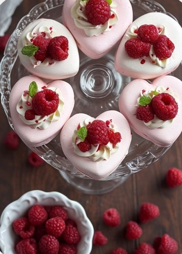 Сердечки любви: нежное безе с кремчизом и малиной ко Дню Святого Валентина!
