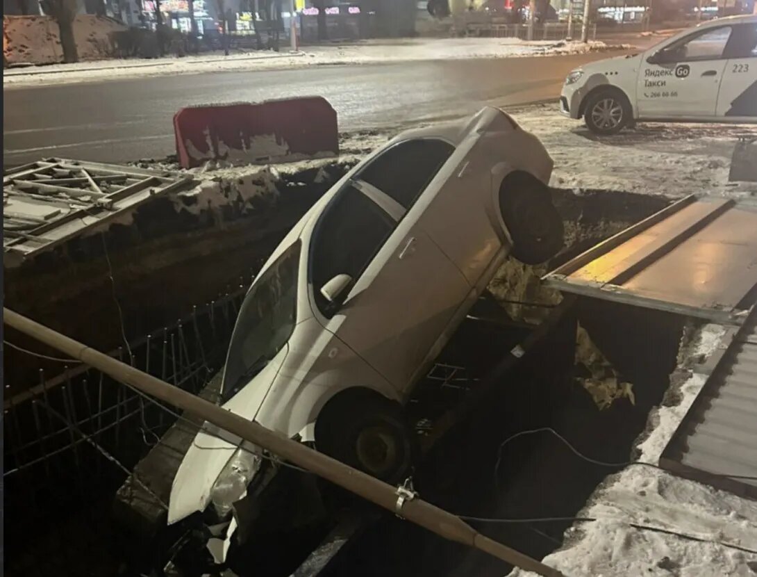 Водитель провалившейся в котлован на Остужева Ravon Nexia не пострадал