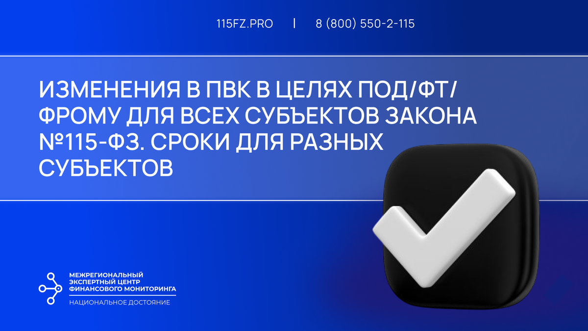 Изменения в ПВК в целях ПОД/ФТ/ФРОМУ для всех субъектов закона №115-ФЗ. Сроки для разных субъектов
