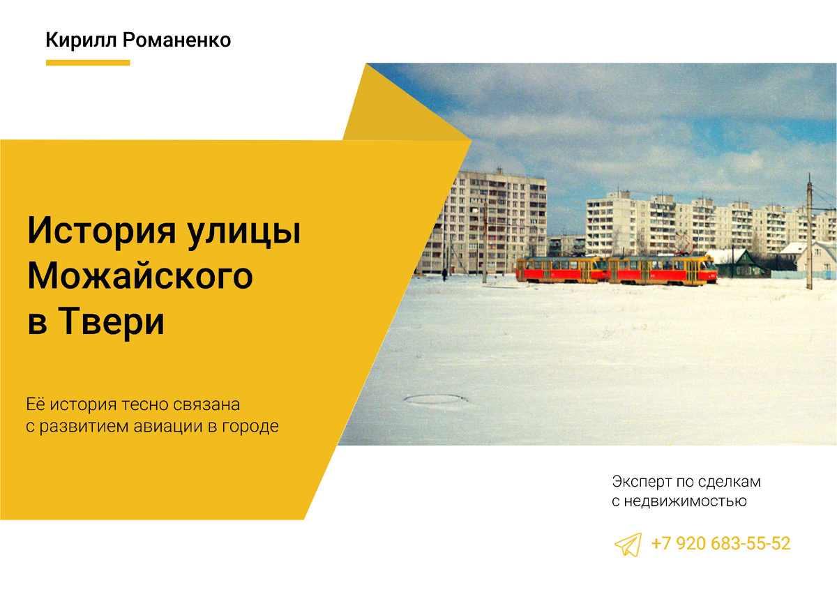 Улица Можайского - важная магистраль Твери, названная в честь пионера авиации А.Ф. Можайского. Её история тесно связана с развитием авиации в городе. С 1926 года на месте нынешнего Южного микрорайона располагался аэродром, а в 1929 году здесь появился многоцелевой авиаотряд. Эта связь с небом и определила будущее имя улицы. Сегодня улица проходит от Волоколамского шоссе до улицы Левитана. Однако по генплану 1970 года она должна была продолжаться до Бурашевского шоссе. Эти амбициозные планы так и остались на бумаге. Интересный факт: с 1990 по 2009 год на небольшом участке улицы работала трамвайная линия. В 2011 году вновь заговорили о продлении улицы до Бурашевского шоссе, но и эти планы не были реализованы. Сейчас улица Можайского - это не только важная транспортная артерия, но и напоминание о богатой авиационной истории Твери и масштабных градостроительных замыслах прошлого. 📍 Ваш гид по недвижимости Твери