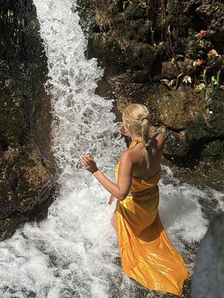 Во время этой поездки на Бали мы с мужем решили пройти древний балийский обряд очищения — Мелукат. Мы выбрали для этого одно из самых атмосферных и живописных мест острова — водопад Себату, который считается священным. Мелукат — это ритуал водного очищения, проводимый в храмах или природных источниках. Считается, что он смывает не только физическую, но и энергетическую грязь, освобождает от негатива и восстанавливает баланс души и тела. Балийцы проходят этот обряд регулярно, особенно после стрессовых событий или перед важными жизненными этапами. Себату — это место, утопающее в зелени, с водопадами и бассейнами с чистейшей водой. С первых минут, когда мы туда попали, ощущалась особая энергетика. В воздухе пахло цветами и благовониями, повсюду звучало пение птиц и шум воды. Перед началом ритуала нас попросили надеть традиционные саронги — без этого заходить в священную воду нельзя. Затем местный жрец (мангуку) провел небольшую молитву и объяснил, что мы должны мысленно сосредоточитьс