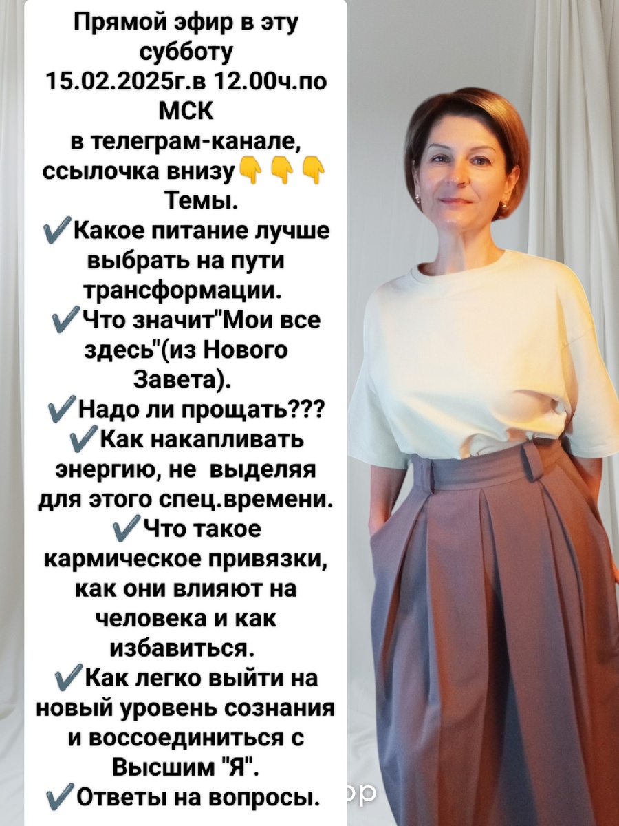 ♾️Добрый день, друзья, предлагаю вам снова встретиться. И провести вместе интересно время. Думаю, вам будет очень интересно послушать информацию на темы, которые я указала выше. 🗝Ссылочка, где будут проходить эфиры 🫴🫴🫴 🗝В чате можете оставить свои вопросы, постараюсь на них ответить. Благодарю❤❤❤. До скорой встречи.
