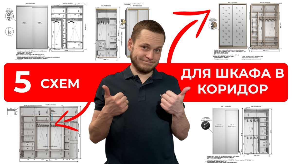 5 очень удобных схем с полками и штангами для шкафа в коридор
